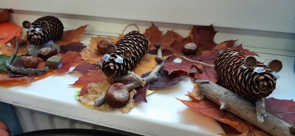 Schnecken und Kürbisse 🎃, passend zum Herbst, wurden von den Kindern hergestellt.
